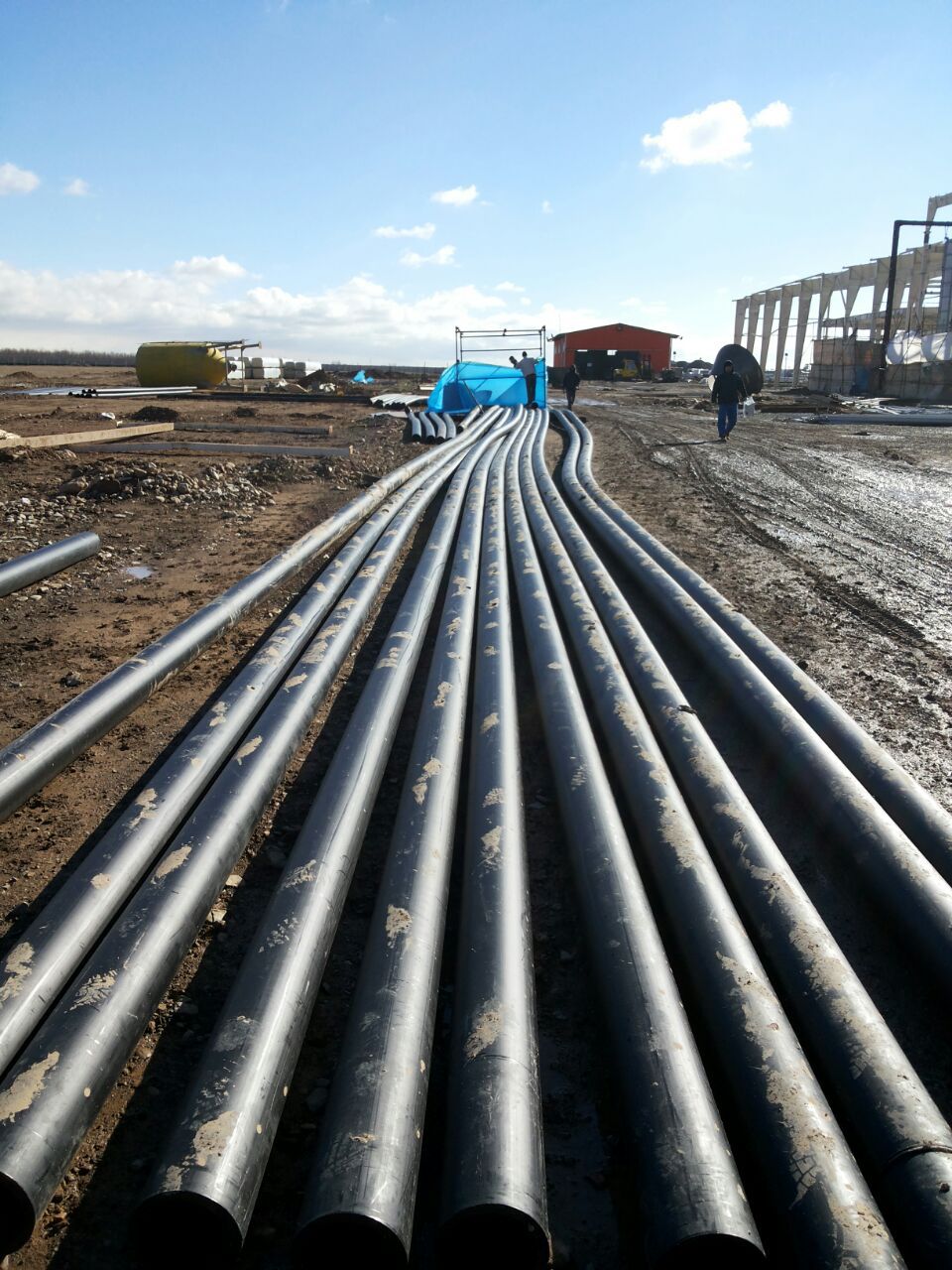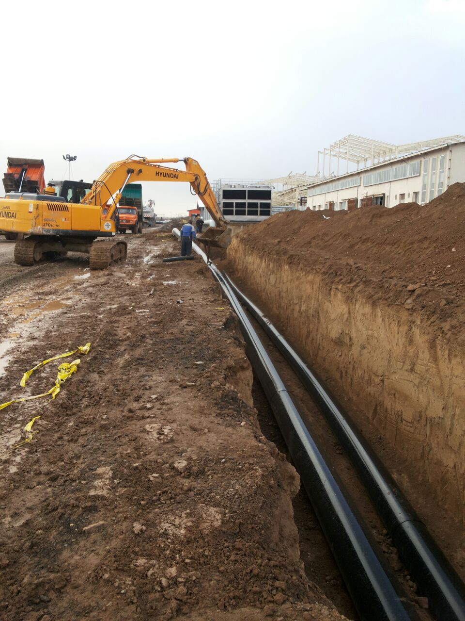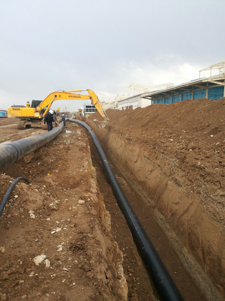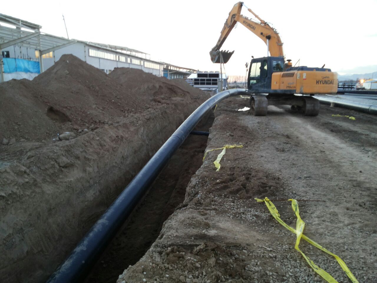 اجرای پایپینگ دفنی پلی اتیلن به طول 17 کیلومتر از ضخامت 63 میلیمتر تا 630 میلیمتر جهت خطوط آبرسانی ، آتش نشانی ، آبیاری ، برگشت فاضلاب ، خطوط کولینگ خط تولید و...